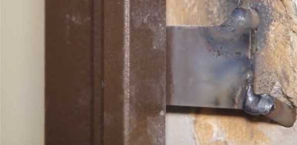 3 вариант: фиксация металлическими захватами. Этот способ применяют при монтаже металлических дверей в зданиях с монолитными стенами; основное удобство в том, что не нужно бурить или сверлить отверстия. Дверную коробку с наружной стороны удерживает специальная окантовка, а изнутри — металлические зацепы, приваренные к внутренней части лутки.