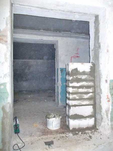 По периметру проема после изъятия лутки остаются куски раствора, открываются трещины и пустоты в кладке стен. Снизу под порогом разрушения бывают особенно сильными: кирпичная кладка рассыпается, прогнивают старые балки. Все это следует убрать, раствор вычистить перфоратором, выровнять проем по всей площади.