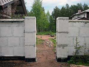 Еще одни столбы для ворот с калиткой на основе несъемной опалубки из газобетона.