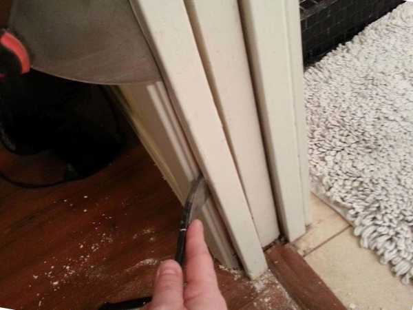 Шаг 1: долой старые двери. Первоначально необходимо демонтировать старую дверь. Снимаем с петель створку и переходим к демонтажу коробки. Зачастую, старая дверная коробка мешает монтажу новой раздвижной двери. Выполняйте все работы по извлечению дверной коробки аккуратно, чтобы не повредить углы и стены.
