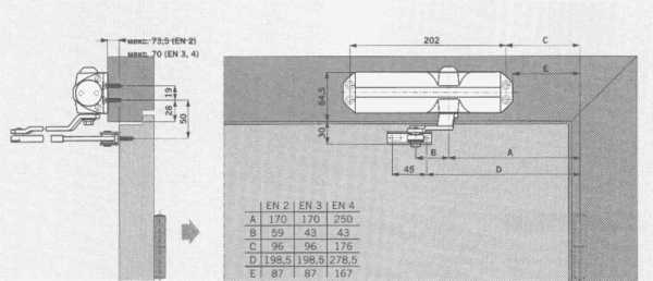 Схема установки доводчика на двери