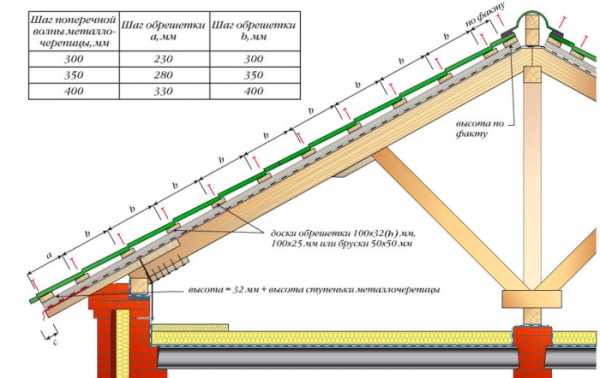 Расстояние между обрешеткой под металлочерепицу