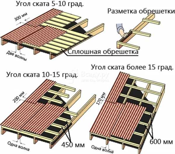 Инструкция: монтаж ондулина выполняют на обрешетку, шаг которой подбирается в зависимости от уклона кровли
