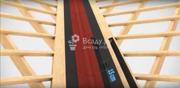 - Увеличивая угол до 10°-15°, меняем величину нахлеста: в продольном направлении это одна волна, в поперечном – 16 см.