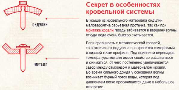 Внимание! Чем фиксировать? Продается специальный крепеж, с определенным типом шляпок. Для забивания в брусья обрешетки выбирается гвоздь со шляпкой, которая закрывает его после утопления метиза в лист и дерево, чем защищает металл от коррозии. Новая разработка — специальные ударопрочные гвозди специально под ондулин со сплошной прочной шляпкой.