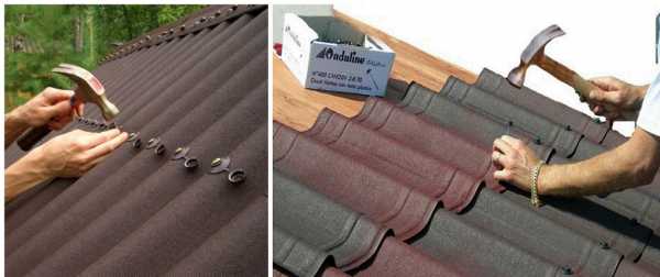 В крайнюю волну, которая идет внахлёст, гвозди забивают одновременно с монтажём следующего листа.