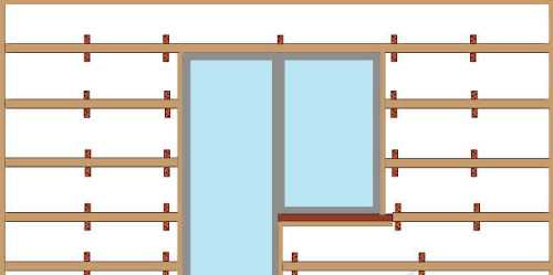 Перед тем как устанавливать поперченные рейки, следует осуществить разметку поверхности стен, применив уровень, это позволит исключить неровности и перекосы. При неровности стен под рейку можно подложить кусочки древесины.