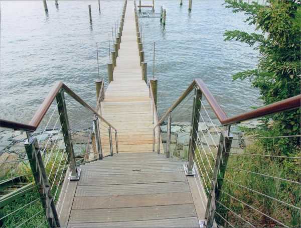 Нержавеющее ограждение для маршевой конструкции является самым простым в монтаже и его доступно сделать своими руками даже новичкуВ качестве перемычек в нержавеющих ограждениях применяют специальные алюминиевые тросы.