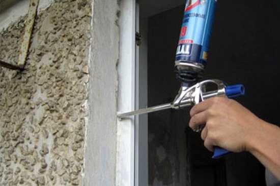 Для герметизации лучше всего использовать специальный пистолет и так называемую «профессиональную» пену с низким коэффициентом расширения в процессе полимеризации. Это предотвратит возможность деформации дверной коробки и заклинивание дверей после отвердения герметика. Щели должны заполняться на 1/3 с учетом последующего расширения в процессе полимеризации.