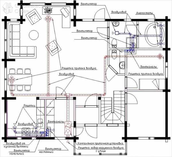 На схеме показан частный дом вентиляцияГлавные особенности приточно-вытяжной вентиляции