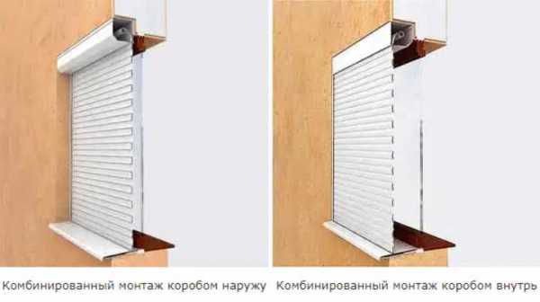 Все особенности помещения можно учесть при комбинированном монтаже, когда короб расположен внутри и механизм в закрытом виде будет находиться на одной линии с фасадом. Второй вариант комбинирования – короб находится снаружи, не допуская выступания частей конструкции.