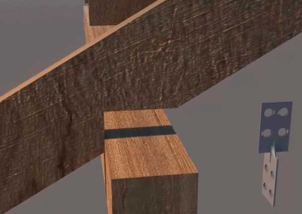 4. Делаем врубку в стропиле и закрепляем ее с помощью скобы: