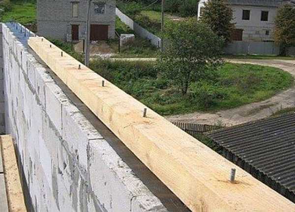 На торчащие из арматуры пруты после застывания бетона надевают брус. Даже на самой короткой стене в армопоясе для крепления мауэрлата должно быть минимум четыре 12-миллиметровых прута. При выборе шпилек или проволоки, пояс также нужно делать с арматурой.Толщина бетона при обустройстве армопояса не может составлять менее 5 сантиметров. Как только смесь залита, необходимо следить за тем, чтобы в ней не образовались воздушные полости, которые можно увидеть по появившимся пузырькам.