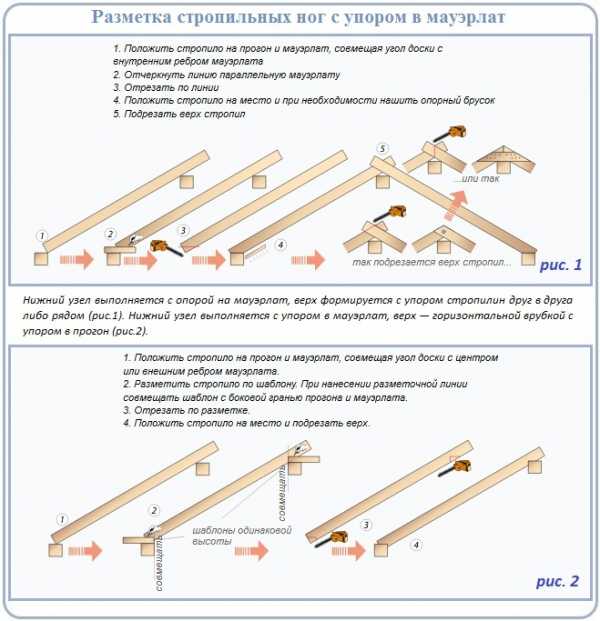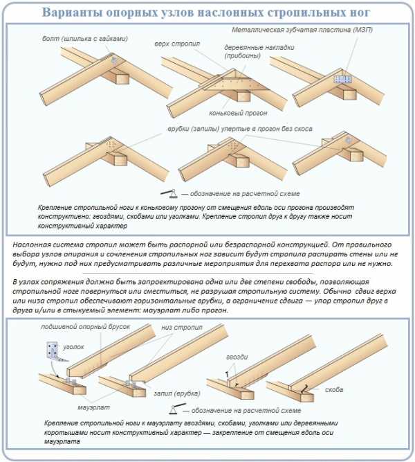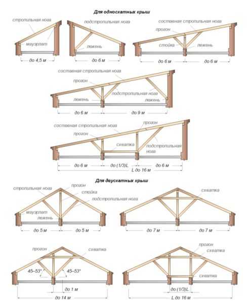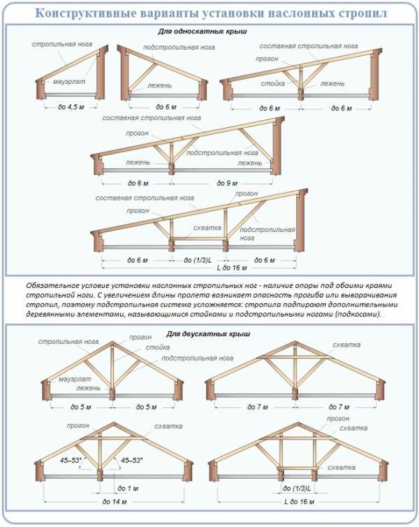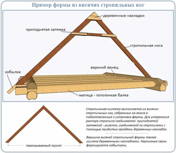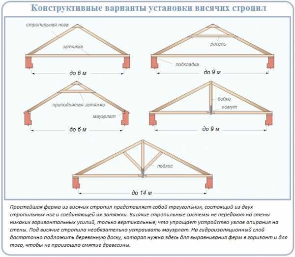 Варианты крыш с висячими и наслонными стропилами
