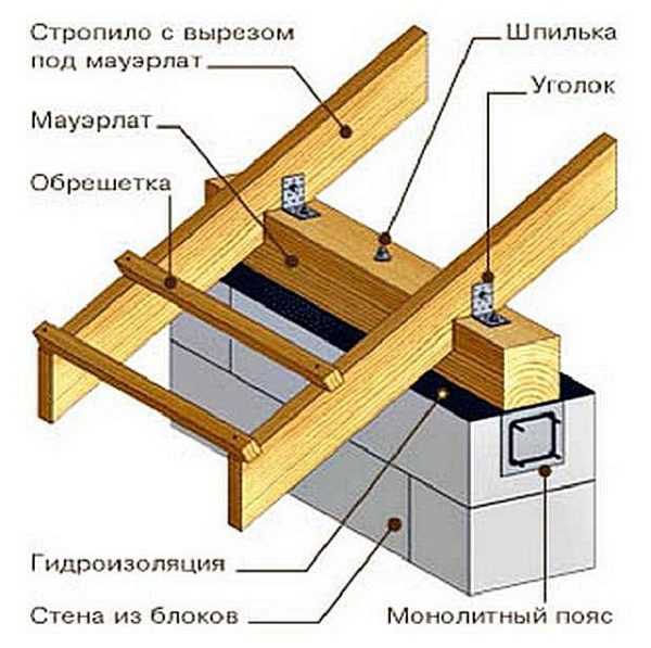 Схема соединения мауэрлата со стропильной ногой