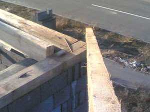 - Далее, сначала поднимаются и временно устанавливаются первые стропила. На каждом из них размечаются места, где будут сделаны прямоугольные выборки для закрепления их на мауэрлате.