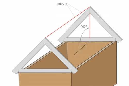 - По каждому скату между уже смонтированными стропилами натягиваются шнуры, которые также будут служить ориентирам для выравнивания остальных деталей конструкции.