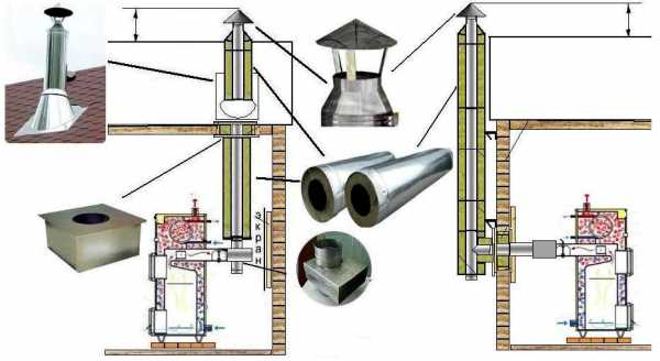 Здесь при монтаже, помимо того, что учитывается расстояние, чтобы обезопасить стену или перекрытие, принимается различная толщина внутренней стенки для нагревательных приборов, из которых производится вывод продуктов сгорания: