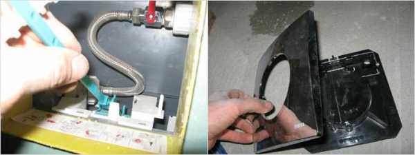 Шаг четвертый. К сливному баку подводится водопроводная труба. Это можно сделать сбоку или сверху, но практически во всех современных моделях место подсоединения можно менять.