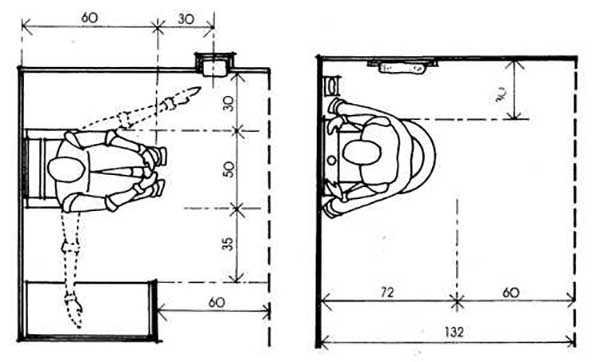 При монтаже унитаза в новостройке или переносе его на другое место стоит выдержать оптимальные расстояния до стен, показанные ниже на схеме. Если расположить сиденье вплотную к боковой стене или тумбе, то пользоваться им будет неудобно.