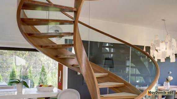 Лестница из натуральной древесины впишется в любое помещениеЕсли к возведению винтовой лестницы подойти со всей ответственностью и аккуратностью, то можно своими руками создать настоящий шедевр, которым будут восхищаться все гости, пришедшие в дом.