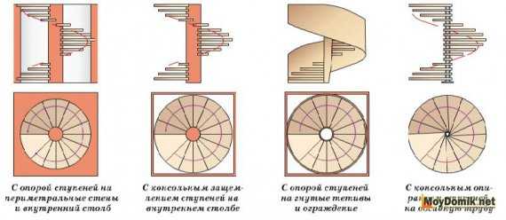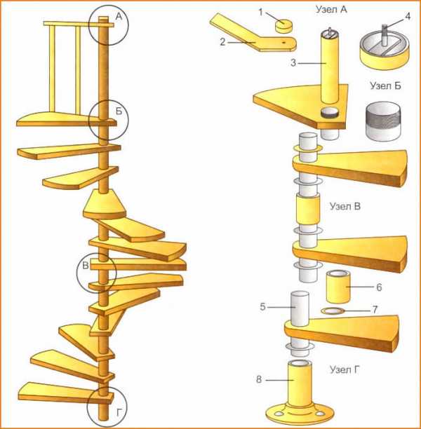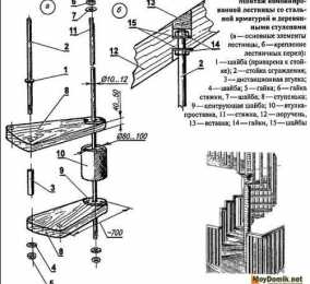 - ступеней, которые устанавливаются вокруг стойки по спирали;