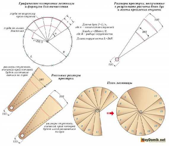 Расчет размеров винтовой лестницыИнструкция по расчету винтовой лестницы