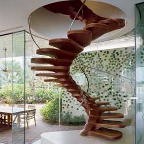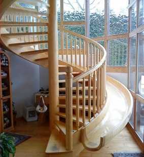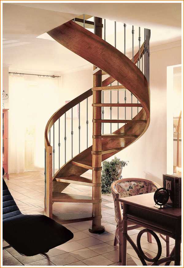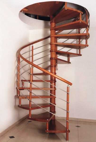 Компактные, прочные и легкие винтовые лестницы из дерева вносят в интерьер помещений элемент оригинальности и необычности. Они являются самыми распространенными конструкциями и могут устанавливаться в маленьких помещениях загородных домов или квартир.