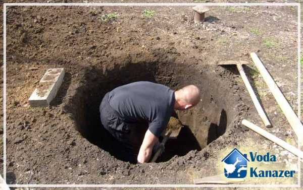 - Работы по копке шахты для будущего ствола колодца. Эти работы проводятся на глубину залегания естественного водного горизонта с поправкой в 1.5-2 метра вглубь, для сбора воды. При выборе расстояния делается поправка и на толщину подушки из гравия и щебня, как естественного фильтра. Ширина ямы учитывает ширину устройства кожуха ствола + замка, в виде глиняного слоя в 25 см. И еще одна важная поправка – все работы надо провести в летний период, когда вода максимально удалена от поверхности почвы;