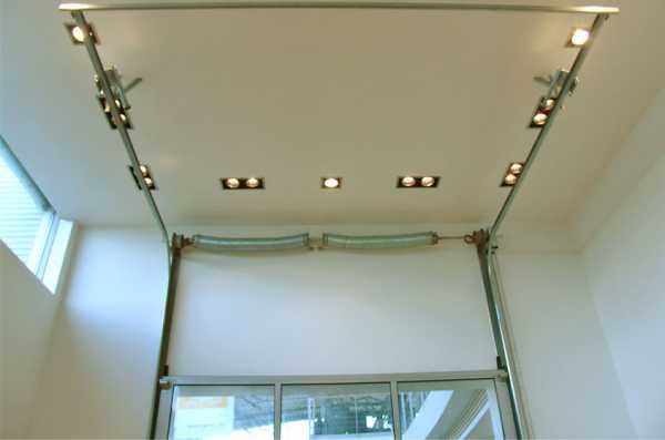 Основной вес панелей полотна (до 95%) компенсирует мощная пружина, или система противовесов. Это позволяет поднимать и опускать ворота без особых усилий даже вручную.
