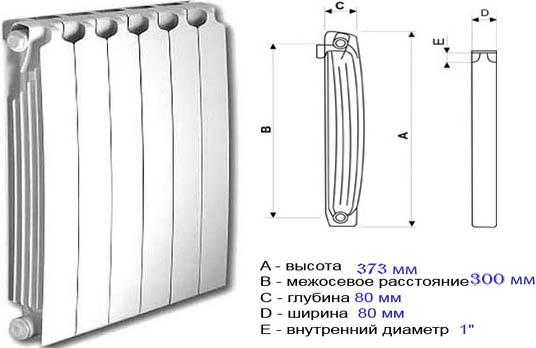 Схема размеров биметаллического радиатора.