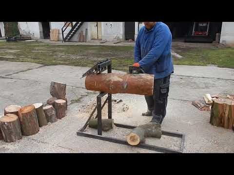 Распиливают бревно двуручной пилой или же с помощью бензопилы, установив его на подставки, называемые «козлами».