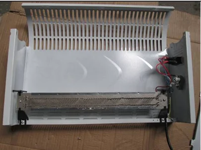 Пластинчатый плинтусный нагреватель – очень простое устройство. Он представляет собой металлический корпус с расположенной в нем низкотемпературной спиралью. При нагреве спирали происходит нагрев корпуса. Далее начинает прогреваться воздух в помещении, но обогрев происходит очень медленно.