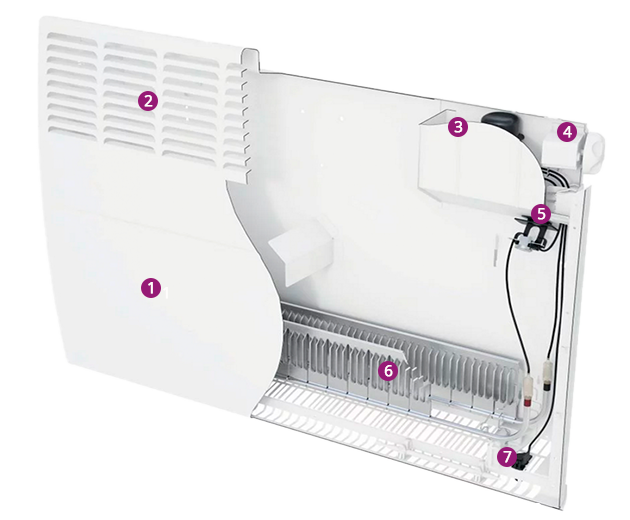 Внутри конвектора имеется пространство, где размещается ТЭН, датчики защиты от перегрева и электронная плата управления c датчиком температуры.