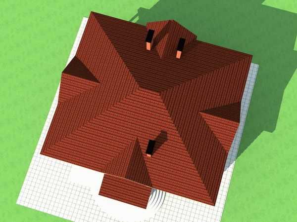 Кровля четырехскатной крыши состоит из четырех пересекающихся плоскостей, или скатов. Две из них имеют форму треугольника и находятся на торцах, играя роль фронтонов. У фасадных скатов — трапециевидная конфигурация. Скаты такой крыши могут иметь наклон от 15 до 60 градусов. Кровельная облицовка может быть выбрана любая, исходя из личного вкуса.