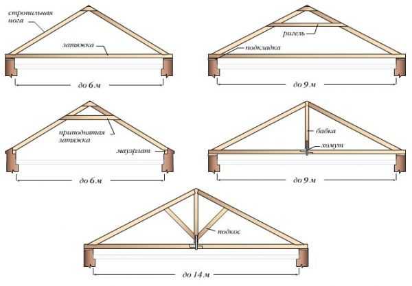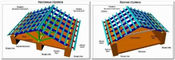 Существует несколько принципиальных схем стропильных систем. В частном домостроении обычно используют две принципиальных схемы стропильной системы — с висячими стропилами и с наслонными стропилами .