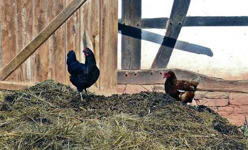 Сделать курятник можно из обработанного дерева, кирпича или пустотелых блоков. Если вы выбираете последний материал, помещение нужно будет штукатурить. Для нужд любительского выращивания кур чаще всего строят курятники из дерева. Между двумя слоями деревянных досок должна быть теплоизоляция, например пенопласт. Внутри стены должны быть гладкими, это облегчит очистку и дезинфекцию курятника. Одна- или двускатную крышу можно сделать из дерева, ПВХ или плитки. Не подходит для этой цели материал, который летом сильно нагревается, а зимой охлаждается. Не рекомендуется также покрытие крыши только битумом, так как через несколько лет может наблюдаться утечка тепла.
