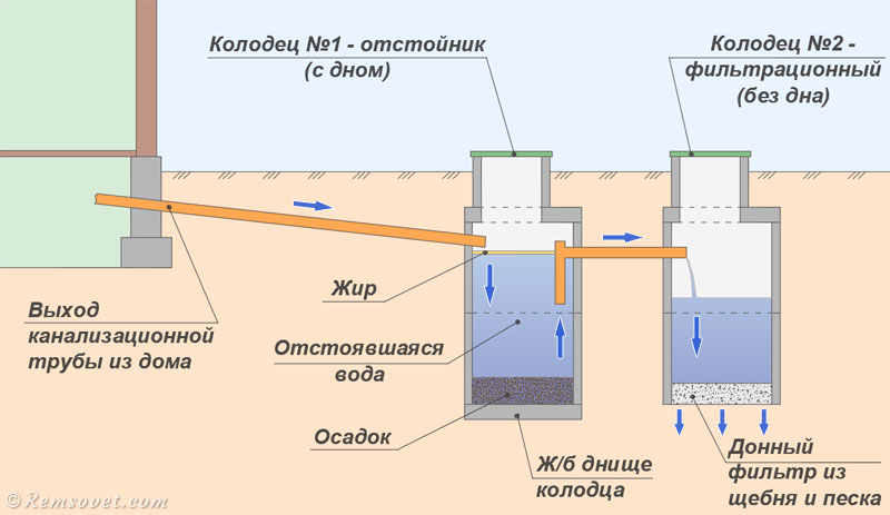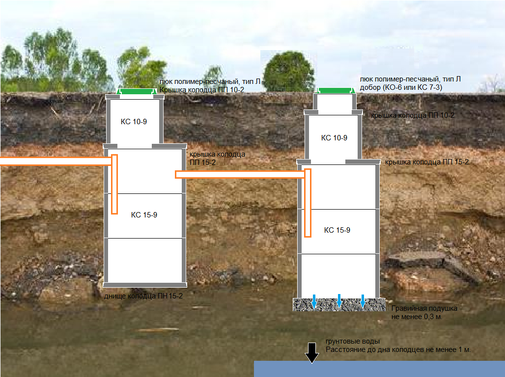 Сооружение выгреба с переливным колодцем допускается на грунтах с хорошей фильтрационной способностью. Сброс очищенных стоков в скальные и глинистые породы невозможен