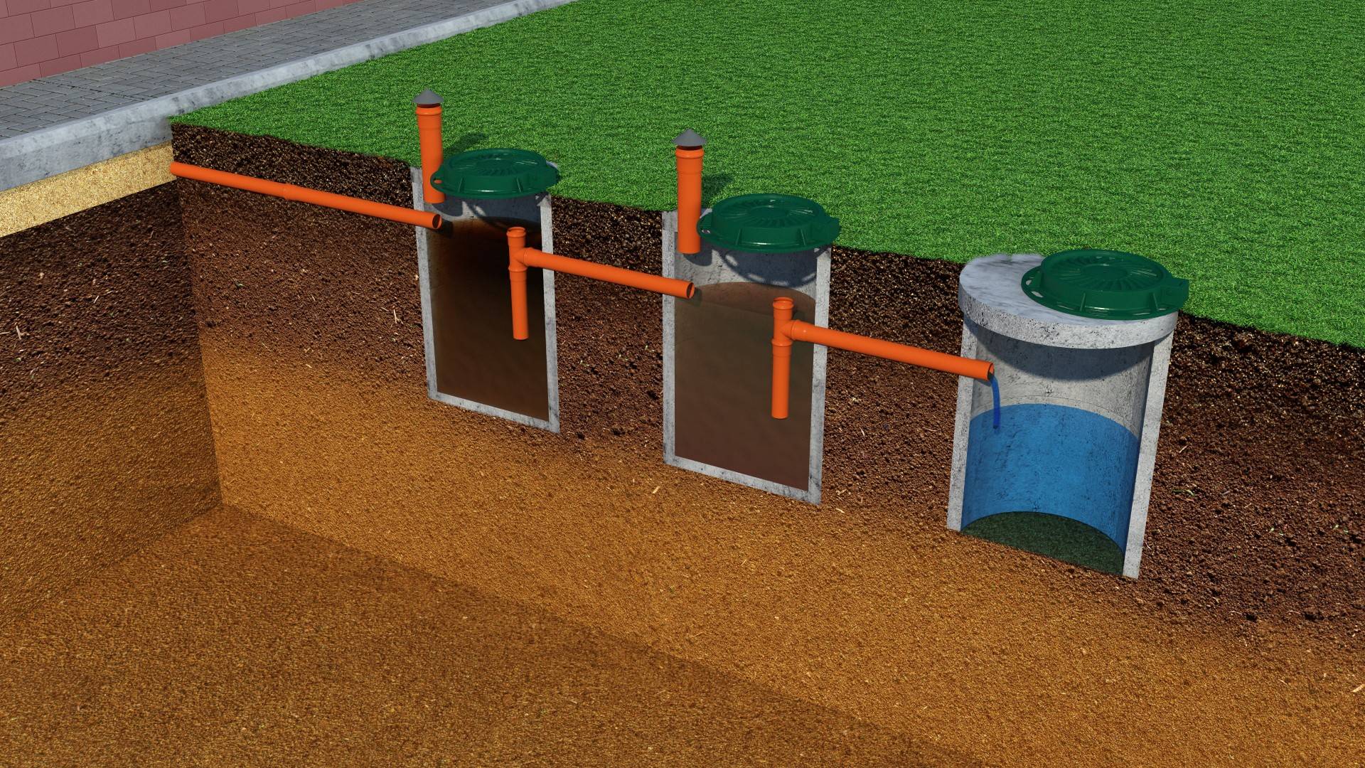 Первые два колодца предназначены для переработки стоков, а последний — для фильтрации прошедшей две степени очистки жидкой составляющей канализационной массы. Его дно и/или стены делают проницаемыми, как и при сооружении двухкамерной канализации.