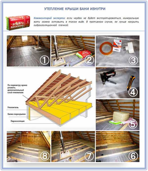 Как качественно утеплить крышу бани своими руками: основные этапы выполнения работ: