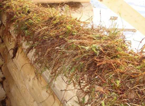 Рекомендуется осуществлять наружное утепление кровельной конструкции в процесс монтажа сруба из дерева. Данную процедуру нужно будет повторить спустя год, когда произойдет усадка деревянных элементов, проявятся новые щели. Лучше всего в качестве утеплительного материала подойдут: мох, конопляная пенька, войлок, льняная пакля. Все эти материалы экологически безопасны, прекрасно ложатся на поверхность, главное недорогие.