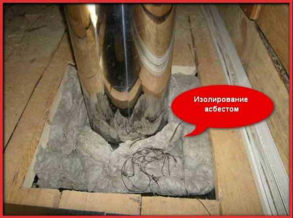 При этом внимание надо обратить на тот участок, где утеплитель соприкасается с дымоходом. В таких местах термоизолятор и доски надо обработать огнеупорной мастикой или отделать асбестом.