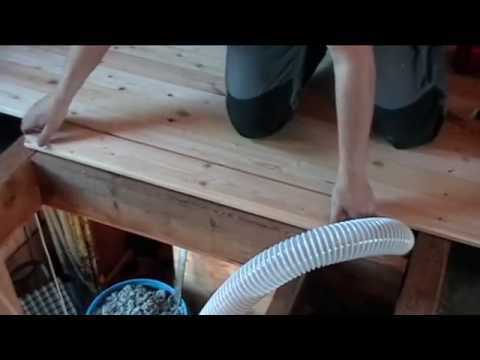 - напольное покрытие, если оно уже постелено, временно удаляют, чтобы освободить пространство для задувки эковаты;