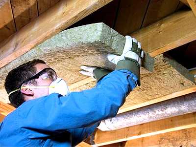 Утеплитель укладывается на слой гидроизоляцииВнимание! Работы с утеплителем необходимо проводить, обеспечив защиту глаз и легких – в строительных очках и респираторе. Одежда должна исключать контакт эковаты с открытой кожей. Вата не ядовита, но бура, содержащаяся в ней, может вызвать покраснение и зуд.