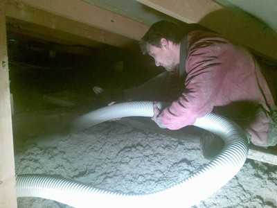 - сухое нанесение ручным способом или при помощи специального выдувного аппарата. Этот способ подойдет для перекрытий: полов, потолка мансарды;