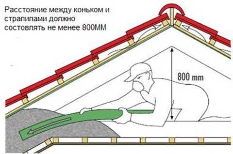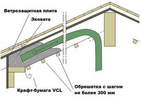 - Между покрытием крыши и утеплителем необходимо оставить зазор в 3-5 см для обеспечения вентиляции и предотвращения возникновения конденсата.