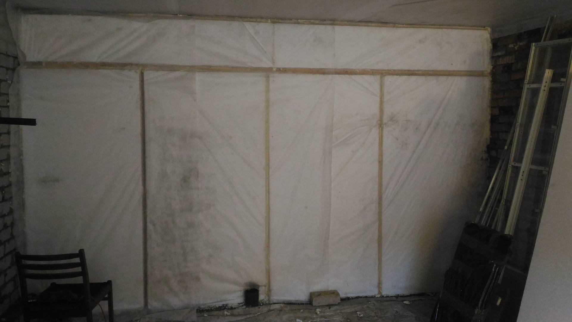 Если была выбрана минеральная вата, необходимо собрать на стенах обрешетку из деревянного бруса или металлического профиля для гипсокартона. В ячейки необходимо вставлять фрагменты утеплителя. Предварительно поверхность стены застилают гидроизоляционной пленкой.