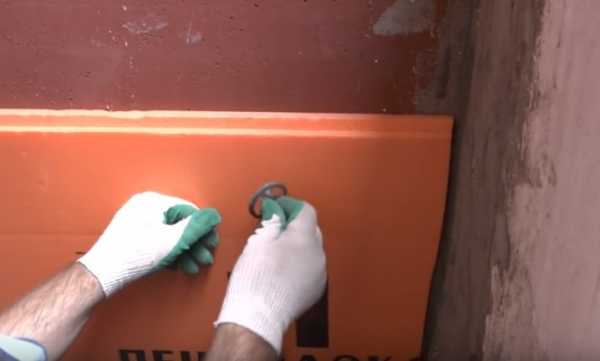 - Измеряем ширину всех стен балкона, отмечаем нужный отрезок на плите пеноплекса и с помощью строительного ножа или ножовки производим раскрой.