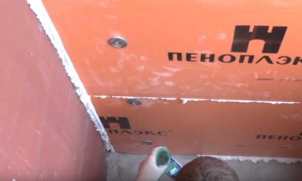 - После установки всех плит пеноплекса необходимо обработать все швы монтажной пеной особенно в углах.