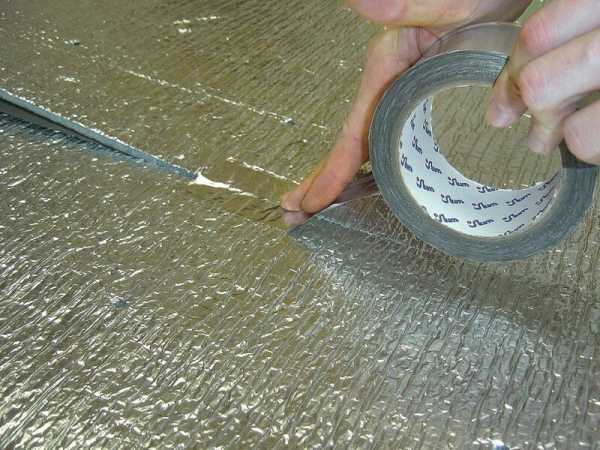 Для того, чтоб утеплитель не набирал влаги с помещения, не портился и выполнял свою основоположную функцию, поверх слоя утеплителя крепиться пенофол и швы обрабатываются алюминиевым скотчем.